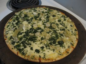 this pizza was a spinach and artichoke topped pizza, its one of my favs but, i really haven’t had a bad one and have been eyeing the ones that have bread sticks included, it just seems so decadent! if you’re making pizza at home YOU NEED A PIZZA STONE. even if it is just frozen pizza. they are fantastic and you can also use them to make bread. a pizza stone with a pan of water….volia instant brick oven.