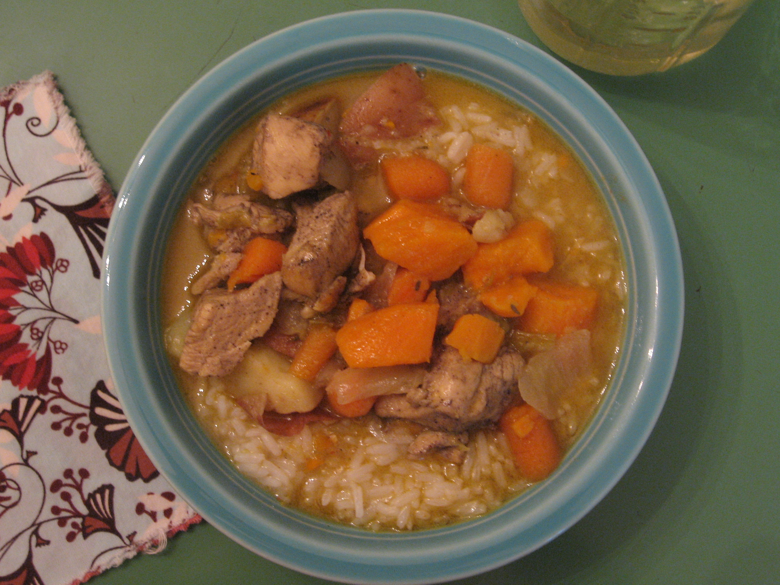 the stew like concoction is served with jasmine rice and was really yummy. i put in a little extra peanut butter which was the right move. sweet, salty flavors in a bowl of yumminess.