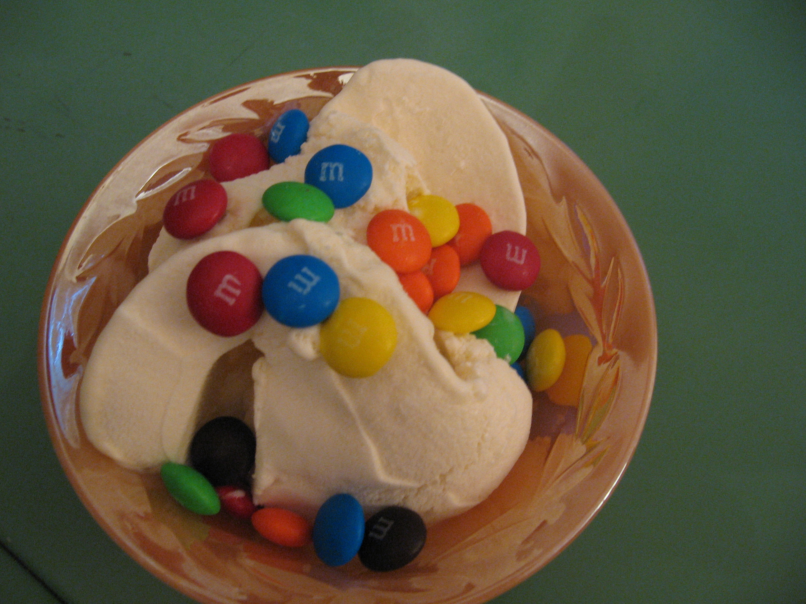 for some extra “i now have power!” entertainment at dinner i began the first season of “Soap” on netflixs. yes the ridiculous 70s comedy show that makes fun of daily soap opreas and has a very young billy crystal playing a gay man. and of course this entertainment was best enjoyed with one of my favorite combinations for dessert, vanilla ice cream topped with m&ms. a celebration of being back on the grid was truly had!