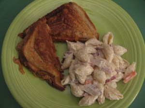 i paired my sandwich with some pasta salad and made my day a lot better!  while i ate i watched an episode of “Family Ties” and now having made it through 2 seasons of this fabulous 80s show i have fully concluded the keaton family would have been down with meatless mondays.