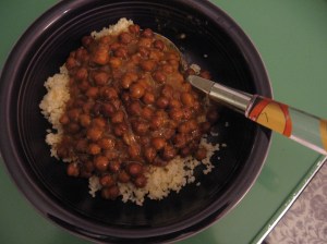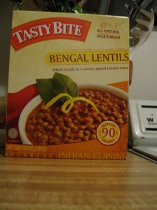 taggart introduced these to me as an excellent food to take camping.  tasty bites are little boxes of premade indian dishes that i love to add couscous with.  all are vegetarian, some even vegan.  look for them they are often in the ethnic food aisle at the grocery store.  its yumminess in a bowl!