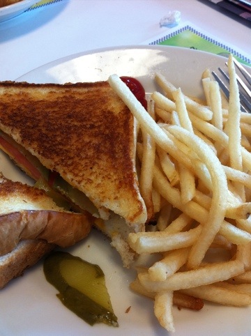 Steak 'n' Shake grilled cheese with pickle and tomato AND fries