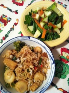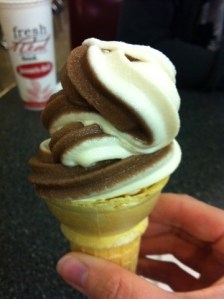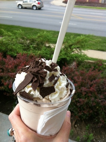 Sci-fy Drive-in Night: Hilary's veggie burger, homemade french fries and John's chocolate peanut butter shake