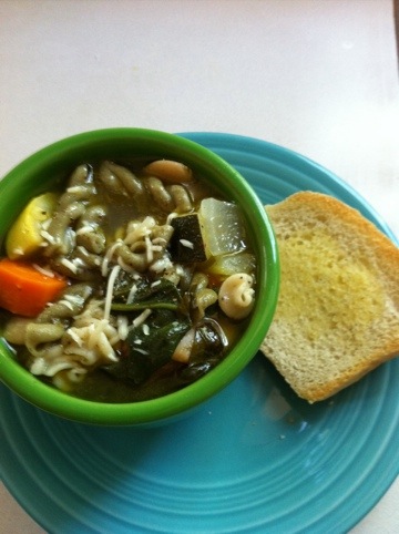 Grilled provolone cheese, Italian vegetable soup, apple slice and two fries
