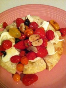 Loose Pizza- over-roasted tomatoes with garlic, fresh mozzarella, and multi-grain pizza dough