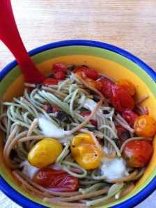Pasta with oven roasted tomatoes and fresh mozzarella