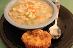 for my first batch of chicken noodle soup ever, i must say, i do declare it a success. the banana crumb muffins of course helped make the meal extra splendid. i love baking those because the muffins have a butter/brown sugar crumb on top and when they are baking they make the whole house smell like melted sweet butter……mmmmmmmmmmmmm.