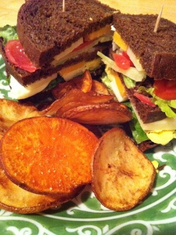 My version of the Nearly Famous veggie club with homemade potato chips and a salad…