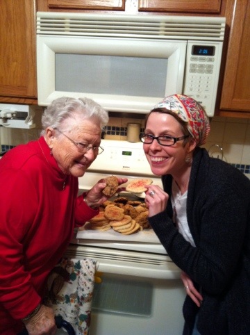 Spending time with my Grandma in the kitchen makes me feel like I’m six again. My favorite parts of the baking afternoon were the easy chatting, grandma’s crafty way of hanging her recipe while working (tucking it under the cabinet door), moments of sweet silence and stirring, and her asking me
