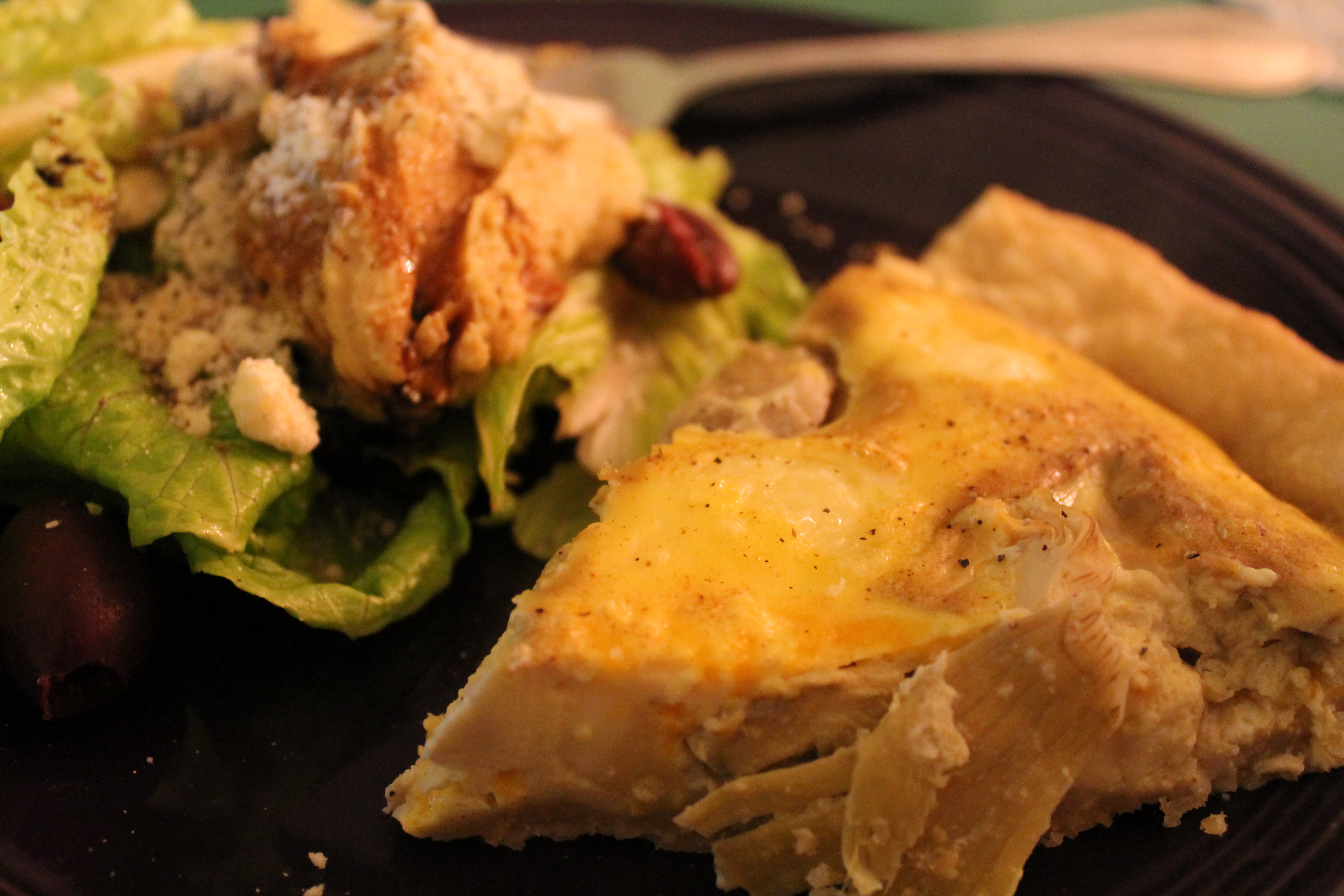 you know how i am, i’m all about using up my food in my fridge….waste not i declare!!! when eyeing the options in the fridge; pie crust, eggs, brie and artichokes the light bulb turned on and quiche was put on the menu for dinner. i’ll admit quiche isn’t something that usually sounds good to me, it dare i say it, always seems really girlie, but once i make quiche i’m always pleasantly surprised. my second thought after “no that doesn’t sound good” is often “why don’t i make quiche more often?”