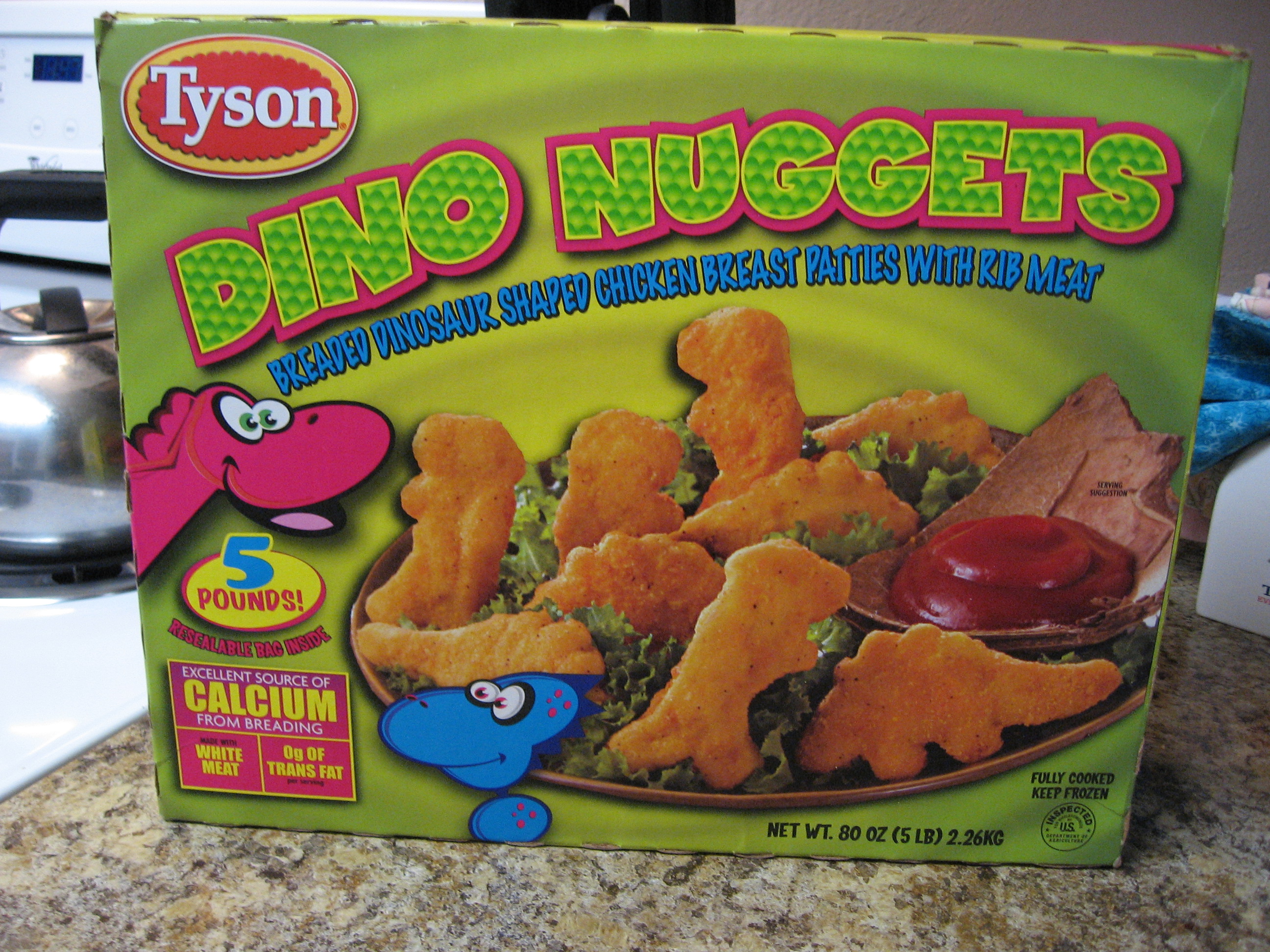 when i saw these at sam’s club i did not resist buying them. i had to have!!! and besides the inner 7 year old crying out for them, i had another justification for getting them. a couple of years ago at cosco i saw these exact same nuggets, at that time the adult in me didn’t allow the purchase of 5lbs of dino shaped nuggets and then the day i decided would be the day to get them cosco had switched to mikey mouse shaped nuggets, it was so sad. “i don’t want mikey moubut now after 4 years i can proudly chow down on some prehistoric shaped chicken chunks and contemplate how to replicate the volcano-esque way the made the bowl of ketchup look on the cover of the box.