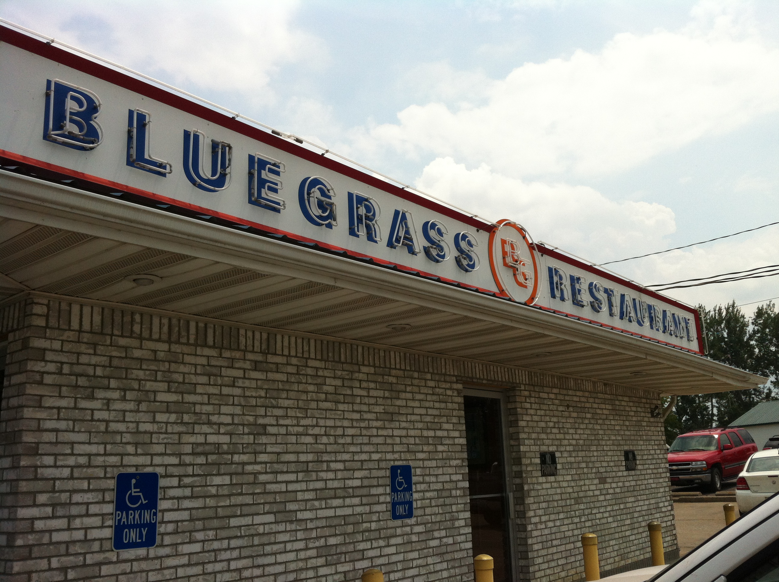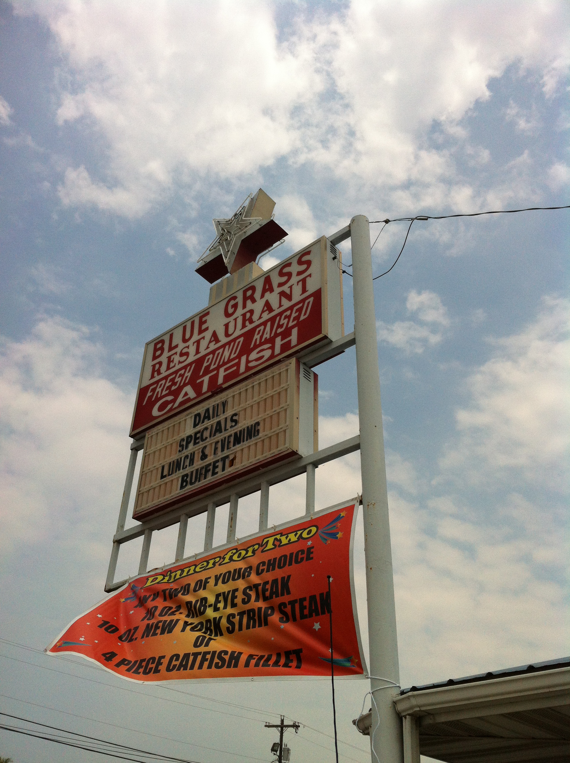 it started at the Bluegrass Restaurant in Ballard County Kentucky.  i have been eyeing this restaurant for some time on my drive between knoxville and springfield.  this time i actually stopped.  what made the restaurant so intriguing the sign that said they had their own pond raised catfish.