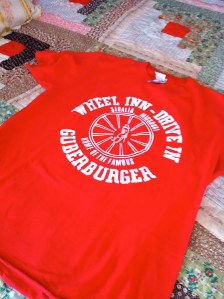 what do i like on my cheeseburger? peanut butter. oh yes i said peanut butter. where did i come up with this crazy idea. one place ….. the wheel inn – drive in in sedalia, mo, home of the guber burger. the guber burger is essential a basic cheeseburger topped with lettuce, tomato, onion, mustard, mayo and peanut butter. as a kid i used to think this was disgusting but then some peanut butter accidentally got on one of my cheeseburgers when we were eating there and i became a convert. i even have a tee shirt to illustrate my love of the guber burger.