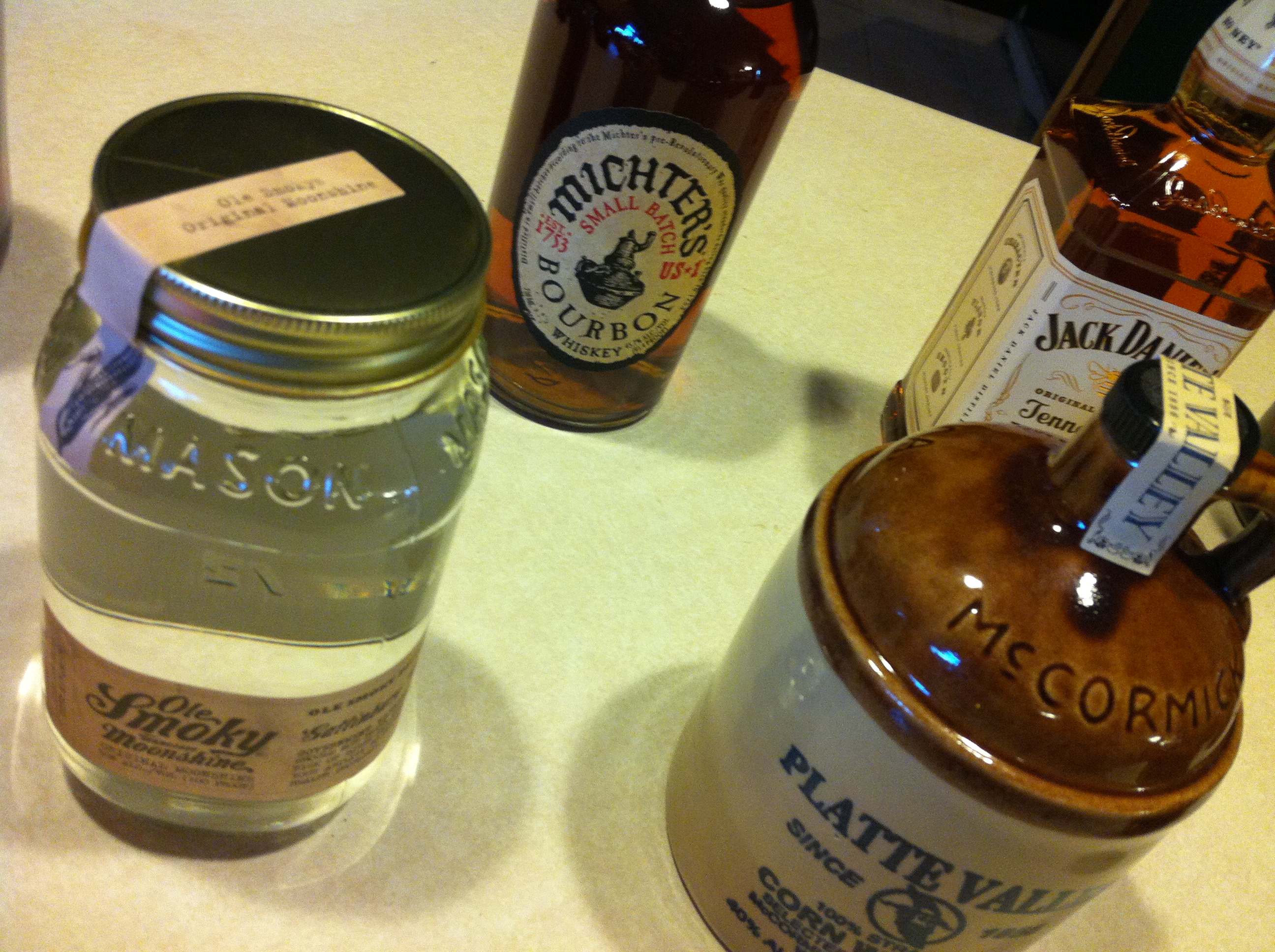 we also had a variety of whiskies from tennesee and kentucky varying in proofs 80, 90, and classic moonshine of 100 proof, along with some nice sweet tennesee honey whiskey.
