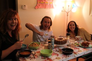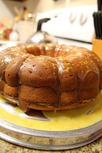 for dessert i was very proud of my cake.  my cakes are usually a complete disaster and i absolutely hate making frosting.  but for this cake i ventured into the realm of bundt cakes, i even had to acquire a new baking dish for it.  since the cake wasn’t lopsided, and half of it didn’t stick to the pan and the glaze actually formed i used the cake as my center piece.  i think i’m converted over to bundt cakes.  the cake led us to our last topic of conversation that night, jess venturing into the world of wedding planning!