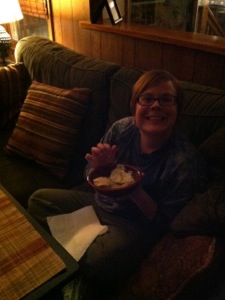 John debated on his meal. He loves breadsticks with cheese dip and Lyn’s chips and dip almost pushed him in that direction. Instead he went with cheese manicotti with Cupini’s pasta sauce. I decided to make him breadsticks anyway…when the world may or may not be ending, why not have it all?