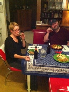 We had ours with spicy roasted brussel sprouts and veggie loaf topped with warm apple butter.