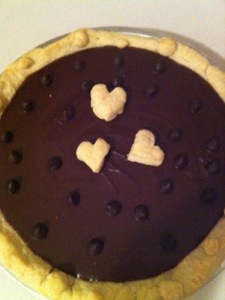 Earlier in the day I thawed out a box of puff pastry (16/17oz) 2 sheets. Roll one sheet out until it’s 1/2 to a 1/4 inch thin. Set aside on a greased cookie sheet (or a cookie sheet covered in parchment, which is what I used) and roll out the other piece of pastry. You’ll want the stretchier, biggest piece for the top.