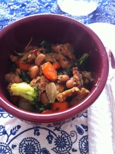 Add them to a saucepan of boiling water. Add a dried veggie broth cube to the water. Boil for 3-4 minutes then drain and set aside.