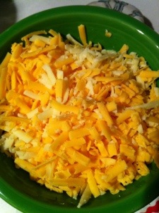 Grate or buy pregrated 8.8 oz’s of Lancashire or sharp cheddar cheese.