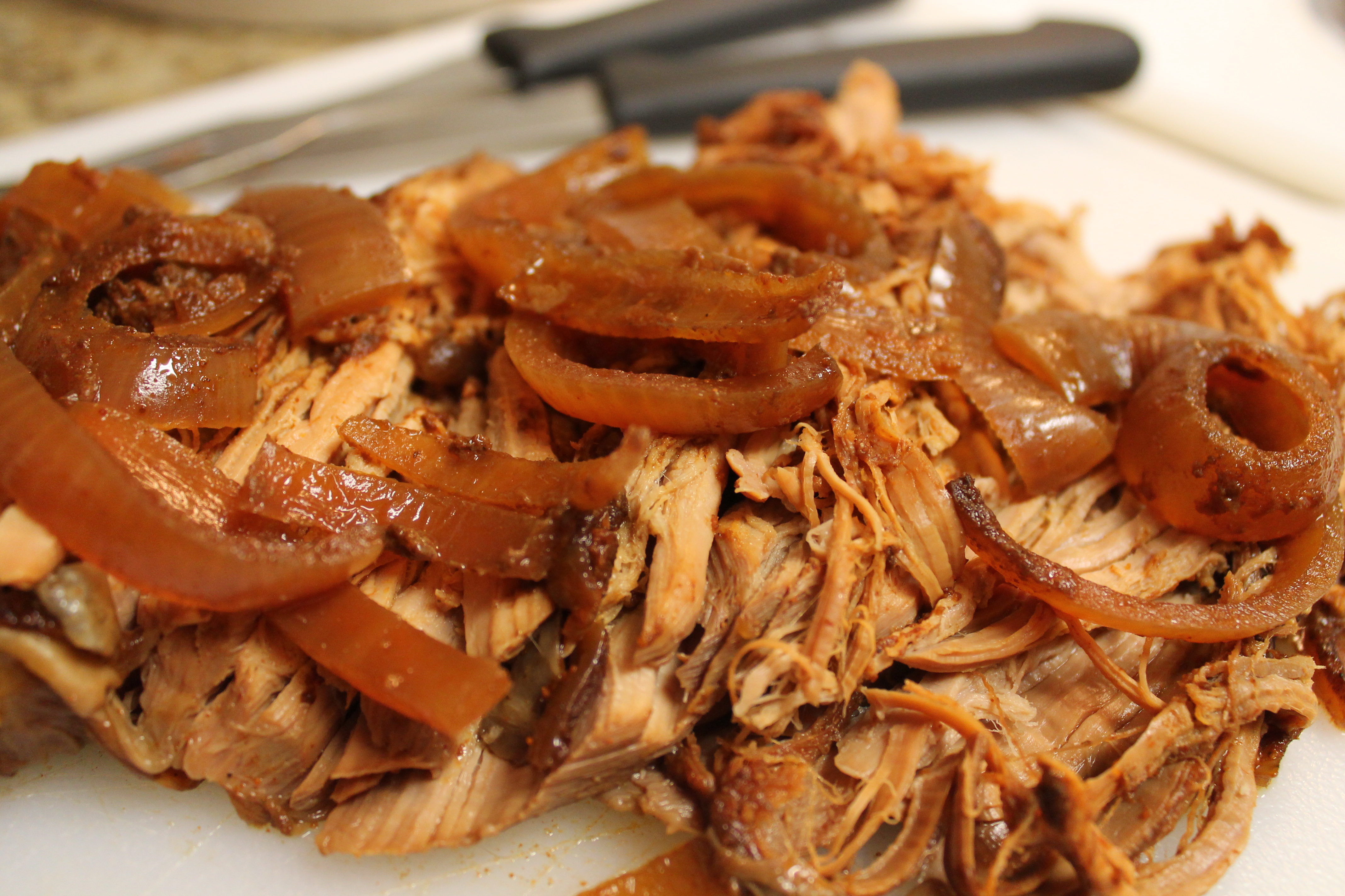 i got excited, when i get excited i like to create wonderful things. thus was born the concept to cook fajita meat using the holy mole brew. in my slow cooker i cooked a pork tenderloin in the mother’s brew along with some onions and a package of taco seasoning.