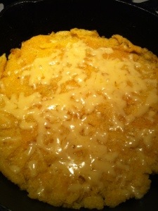 While the polenta was cooking I kept mushing it and flipping it until it softened into on giant yellow mat.