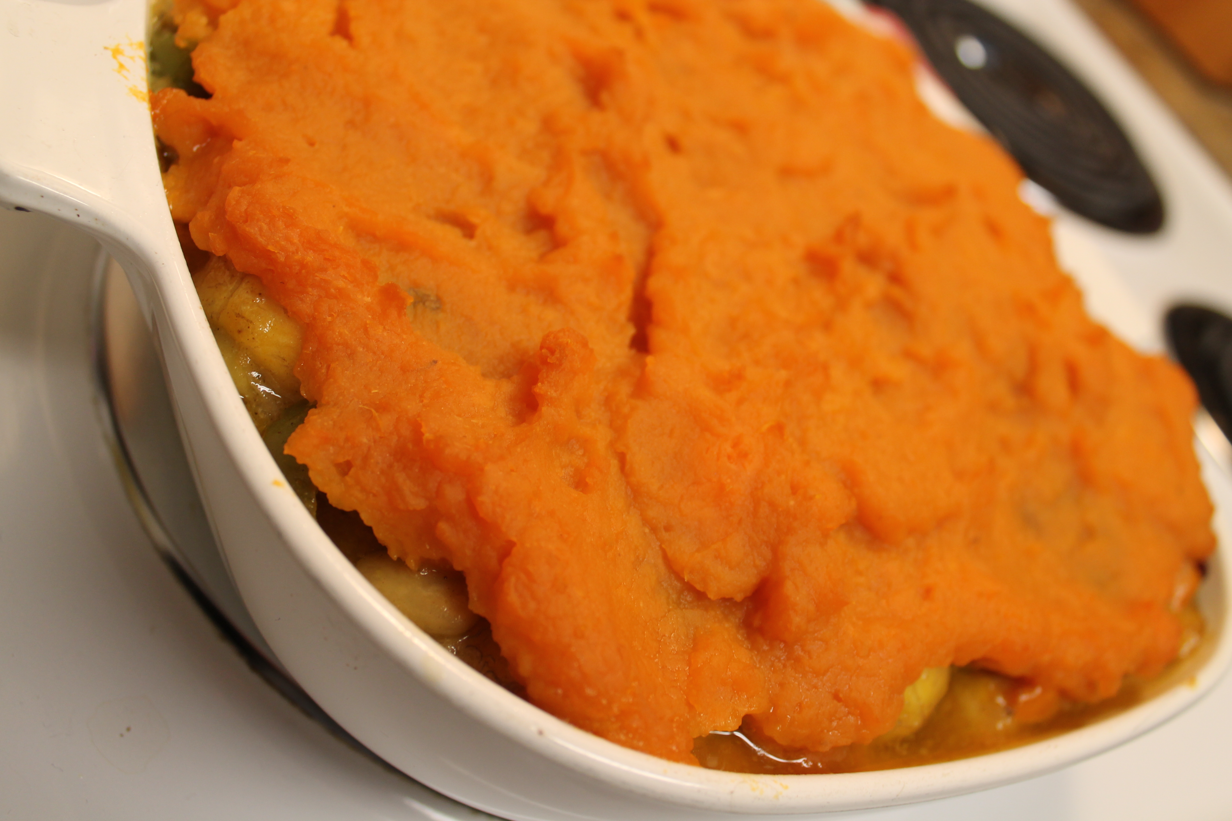 “this was a perfect way to spend a january night!” so said one of my dinner guests at the last meatless monday “lets do dinner!!!” gathering. on the menu was a Jamaican sheppard’s pie. what constitutes a sheppard’s pie to be Jamaican, well. plantains, curry, coconut milk, and topped with sweet potatoes.
