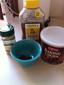 Heat 1 cup of milk almost to a boil then whisk in 2 tablespoons of honey, 2 tablespoons of cocoa powder, 1/4 teaspoon of ginger and a pinch of 5 spice powder.