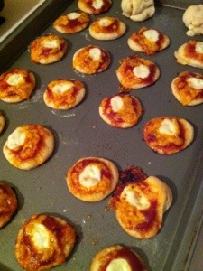 The Super Bowl was rolling around again, so I decided homemades at our house would be tiny homemade pizzas. Think Bagel Bites but even smaller.