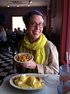 I usually get the VVD sandwich with homemade potato chips, but this time we showed up before they were serving lunch. At first I was disappointed, but then I realized it was a chance to try something different. I always get the same thing because I only get to eat there once or twice a year, so I told my self to seize the opportune moment (as Captain Jack Sparrow would say) and order the veggie Eggs Benedict.