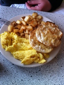 John had his standard eating out breakfast fancied up a bit with an English muffin…