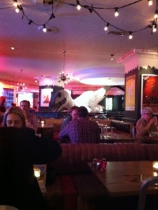 We dropped by his pop-up Jamie’s Diner late one night for dessert. I think it was suppose to be a twist on the Route 66 diner notion, but that twist ended up being- Surprise-dinosaurs!