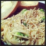 The last few times I have gone to Kansas City I’ve raided whole foods to see what dairy free products they had that I haven’t been able to find at home and I scored big time….Victoria Vegan Alfredo in 2 flavors Alfredo & Roasted Pepper. The roasted pepper is yum yum the regular is a little water downed and needed more garlic. Needless to say Victoria Vegan Alfredo is a perfect meatless Monday!!