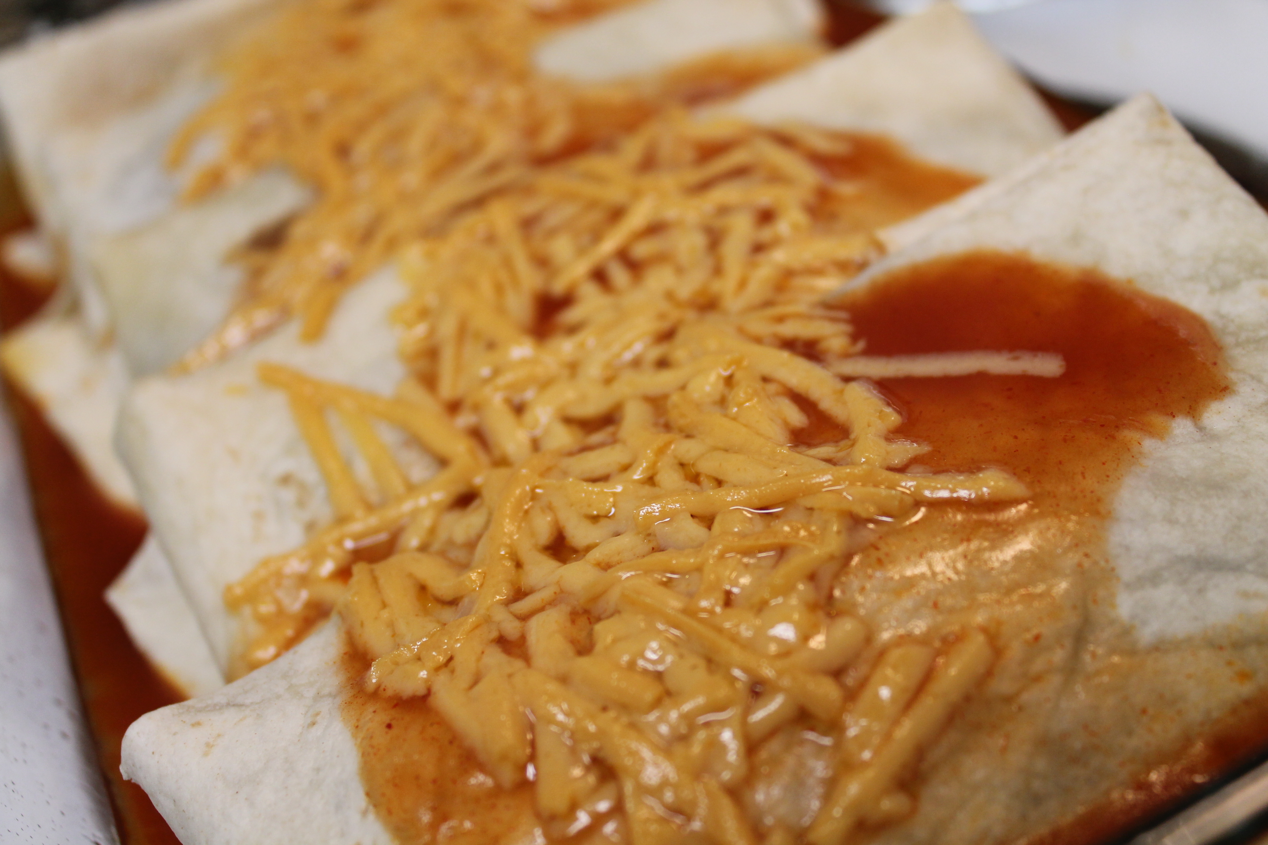 with my various food allergies i’ve come to deem certain menu items as safe and or uncomplicated. for mexican food the easiest thing for me to alter is tacos but oh how i miss the ohey goey ness of enchiladas. so why not make them for meatless monday. i stuffed mine with refried black beans, fresh avocado slices and fresh spinach, made up a side of peach salsa mexican rice and who needs to go out for mexican food any more…not me!