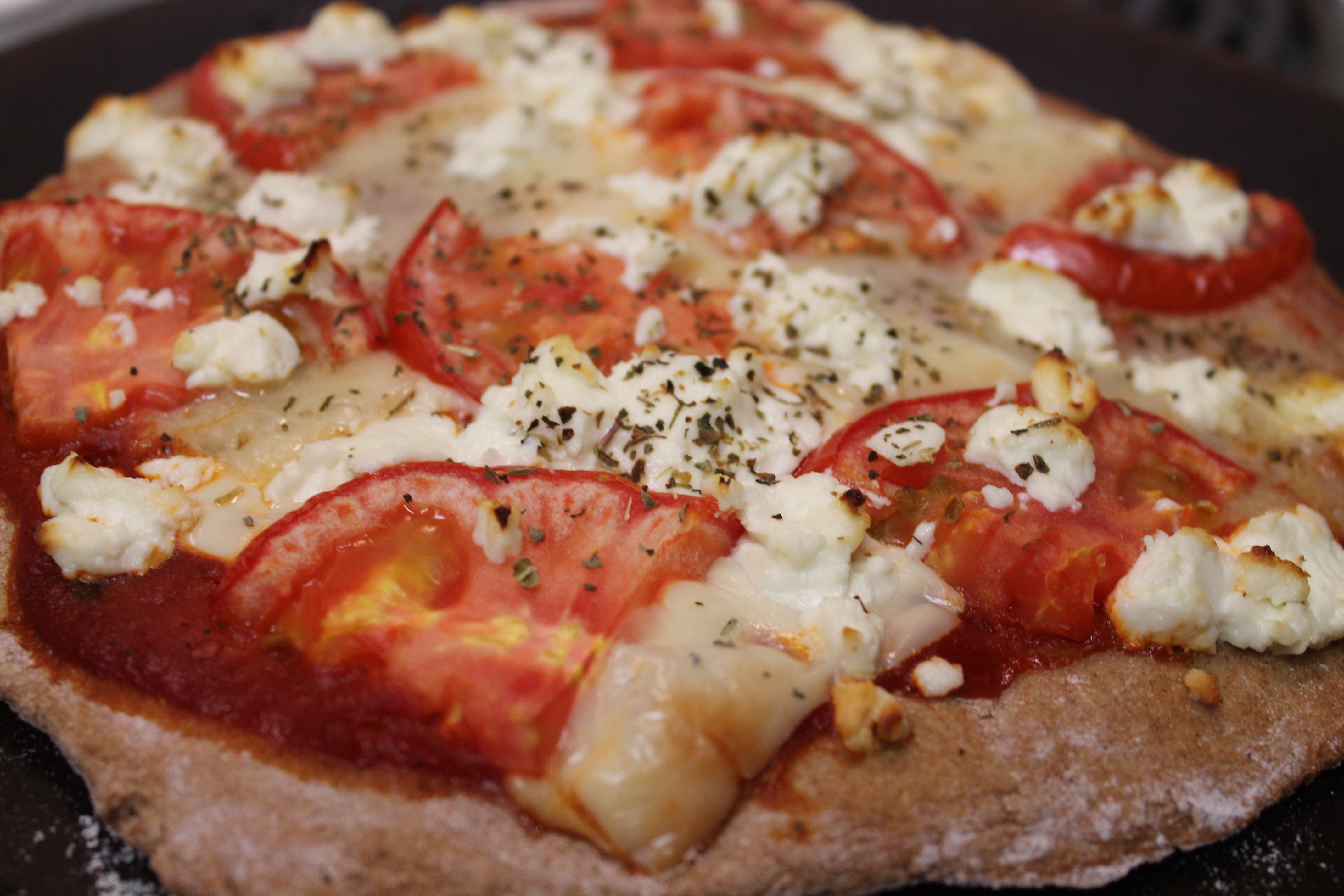 its funny when you develop a food allergy what you end up missing that you can’t eat any more. pizza is a big one for me. yes i can make my own but i miss that frozen take and bake pizza, the ability to just order a pizza and have someone else do all the work, and the big thing have cheese that actually melts on the pizza. there are a few dairy-free frozen pizzas but honestly i have a hard time paying $10 for it and then when it says “cheese melts!” it never really melts just kind of warms up. this led me to an experiment, making my own personal pan pizzas that i freeze and then bake as i want them. i made up a batch of my whole-wheat honey pizza crust, which got me about 3, 6 inch pizzas, topped them with pizza sauce and several dairy-free cheeses, this i find is the key to get any sort of “melting” quality out of those cheeses. i decided to just stick with cheese pizza till i saw how well this whole experiment worked, and i also figured i could always add other toppings as i pulled them out of the freezer. that night however i baked one up for my meatless monday dinner. i made a marghertia pizza that fulfilled my pizza craving. now i love the idea that in my freezer are ready to be baked homemade pizzas that are just calling for future meatless monday dinners!