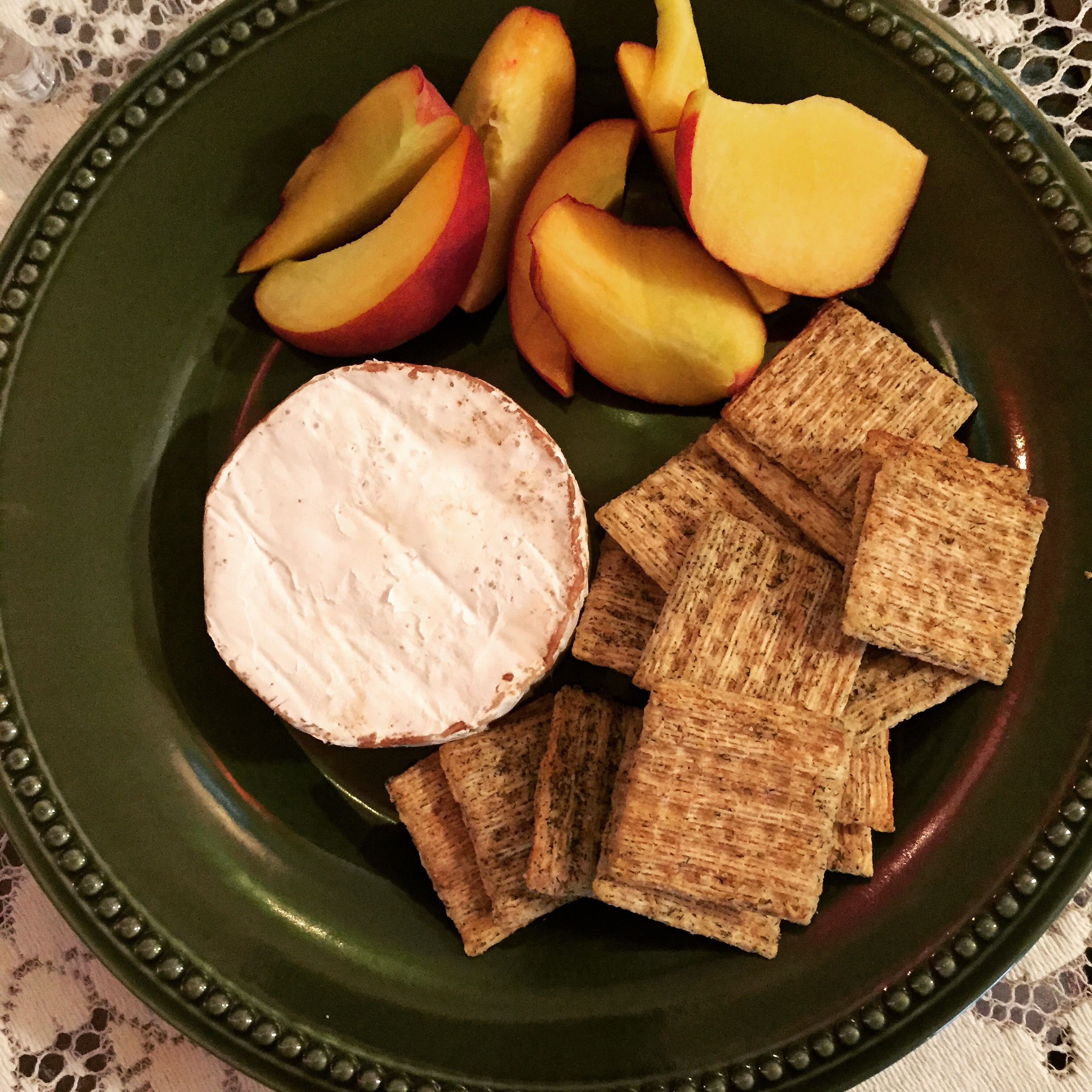And then there are those Mondays that just feel like Monday. This Monday, my mistake hitting up Trader Joes after work while hungry What ended up in the basket multiple wheels of goat cheese Brie & oh several bottles of $3 chuck. What goes best with this cheese wonderful eas…..dill & sea salt crackers,peach slices from the farmers market (fyi toss a few into a glass of white wine..your welcome) Monday hello & good bye!