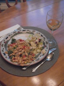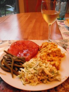 All of the food was great as was the conversation. Two recipes that I want to pass along are the Honey and Soy Glaze and Aunt Glad’s Calico Veggie Salad.