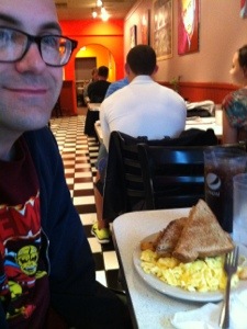 John had his standard eating out breakfast fancied up a bit with an English muffin…