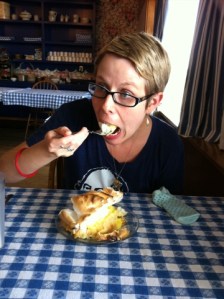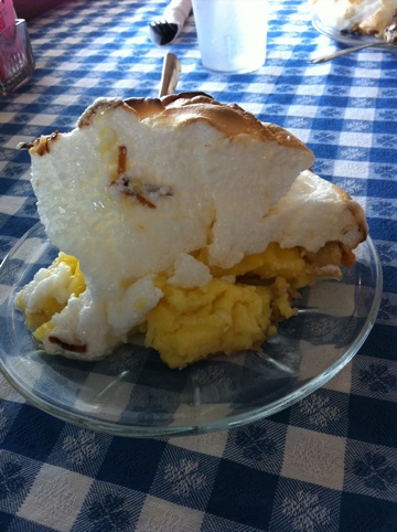 On the road again- some things we ate in Indiana… July 11, 2011sfarrisyoung Leave a comment Foot high pie at the Blue Spring Cafe! I ate the coconut cream in two bites… The chocolate cream. John love’s foot high pie. More pie please. Not at the pie place, but trust me, you would not want to eat the buffalo.