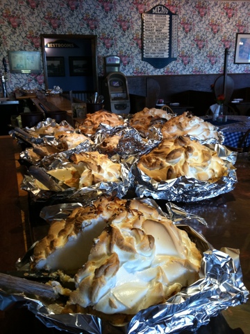 Foot-high Pie at the Blue Springs Cafe June 30, 2013sfarrisyoung Leave a comment Chocolate Pie Peanut Butter Pie The cafe where it all goes down… Well, almost all of it.