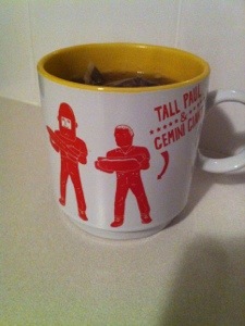 I didn’t eat all of these, but I could have. I got a brownie chocolate meringue. Holy Queen Elizabeth was that a good idea. We also had cheesy bread twists, lavender-mint earl grey tea, and cheese onion pasty.