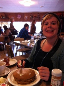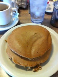 I adapted the kitchn recipe, due to my preferred pancake consistency (which is cakey and a tad bit dense).