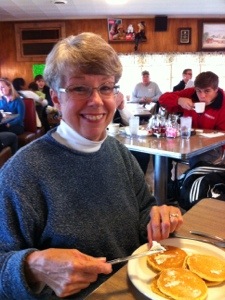 Let the batter to rest for about 10 minutes. This will make your batter fluffier. I learned this trick making cornbread. While you wait, wash the dishes and get the syrup ready!