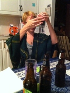 We judged using some of my beer tasting learnings from my Sam Addams Tour a few years ago: clarity of the beer (is it cloudy and it shouldn’t be), scent, and how does it taste when you swish it all around your mouth.