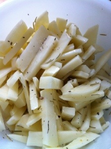 I’ve started adapting a recipe for spicy oven fried and have turned it into a non-spicy rosemary (with a touch of garlic) fries. After years of the original I think I almost like the new version better. I always intentionally make too many so I can have leftovers for breakfast the next day…sneaky cook that I am.