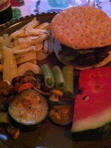 John and I drove 10 hours on Saturday so for our Labor Day Sunday Night Dinner I decided to keep it easy and thaw out some of Lynley’s black bean burgers. She’d made them at our house months ago and we froze the extras- yay for Lynley and for the freezer.