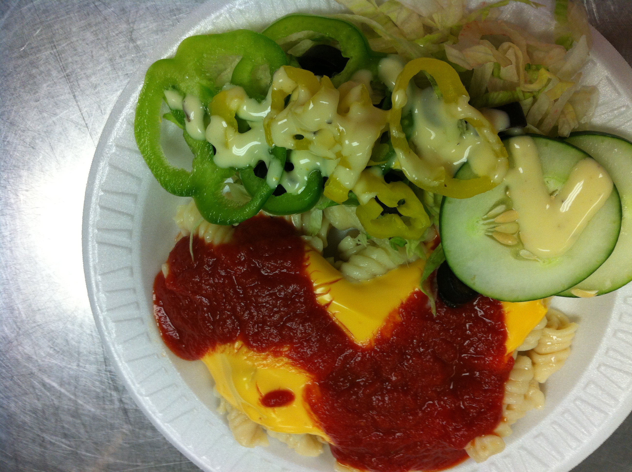the most hated menu option on the middle school lunch program is the pasta bar. i have watched students line up 25 deep for deli sandwiches because we are out of everything else to eat except pasta bar. so what makes up this loathed pasta bar. you get a serving of noodles, and a choice of up to 2 sauces out of 3 options of sauce including; cheese sauce, spaghetti sauce, and spaghetti meat sauce. the funny thing is the kids love mac and cheese. and the mac and cheese is the same noodles that are used on the pasta bar with the same cheese sauce, just on the pasta bar they aren’t mixed together. some days i worry about them that they haven’t figured out to create mac and cheese from the pasta bar.