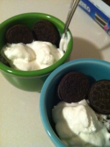 Standing in the aisle at Wal-mart all these memories came back to me. I had to buy some. And guess what? The freezer section TCBY tasted just the same. MAN, just writing about this makes me want some Oreos at least! Sad to say, John just informed me we are out. He blamed the neighbor’s cat, but since it never comes in the house and we don’t feed it, I’m seriously doubting this excuse.