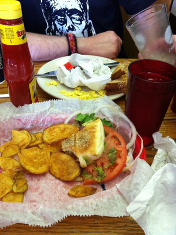 I usually get the VVD sandwich with homemade potato chips, but this time we showed up before they were serving lunch. At first I was disappointed, but then I realized it was a chance to try something different. I always get the same thing because I only get to eat there once or twice a year, so I told my self to seize the opportune moment (as Captain Jack Sparrow would say) and order the veggie Eggs Benedict.